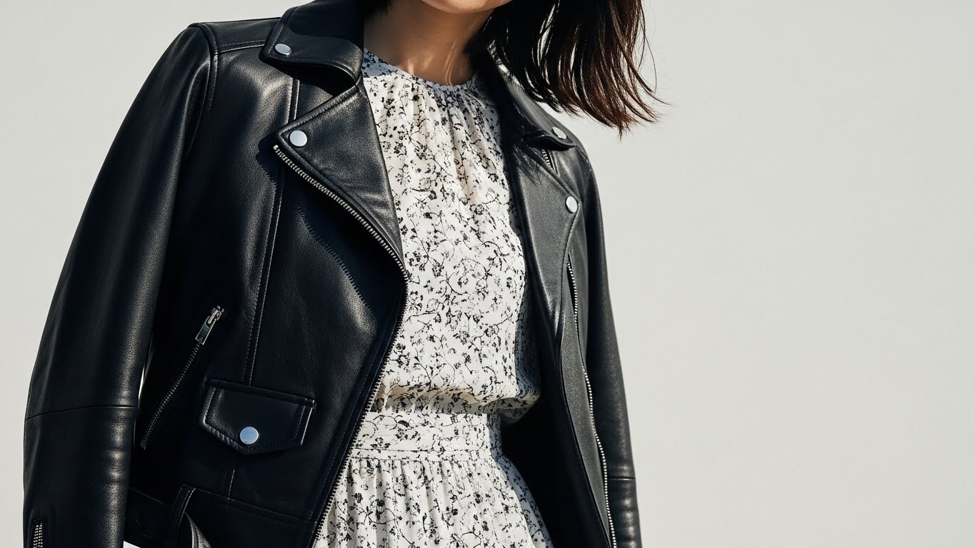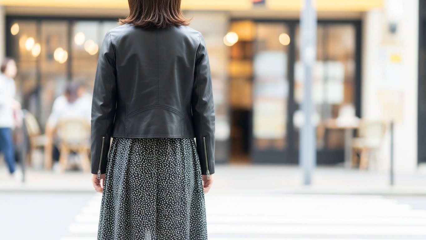 実は、革ジャンとワンピースの組み合わせは初心者でも取り入れやすい万能コーデなんです!