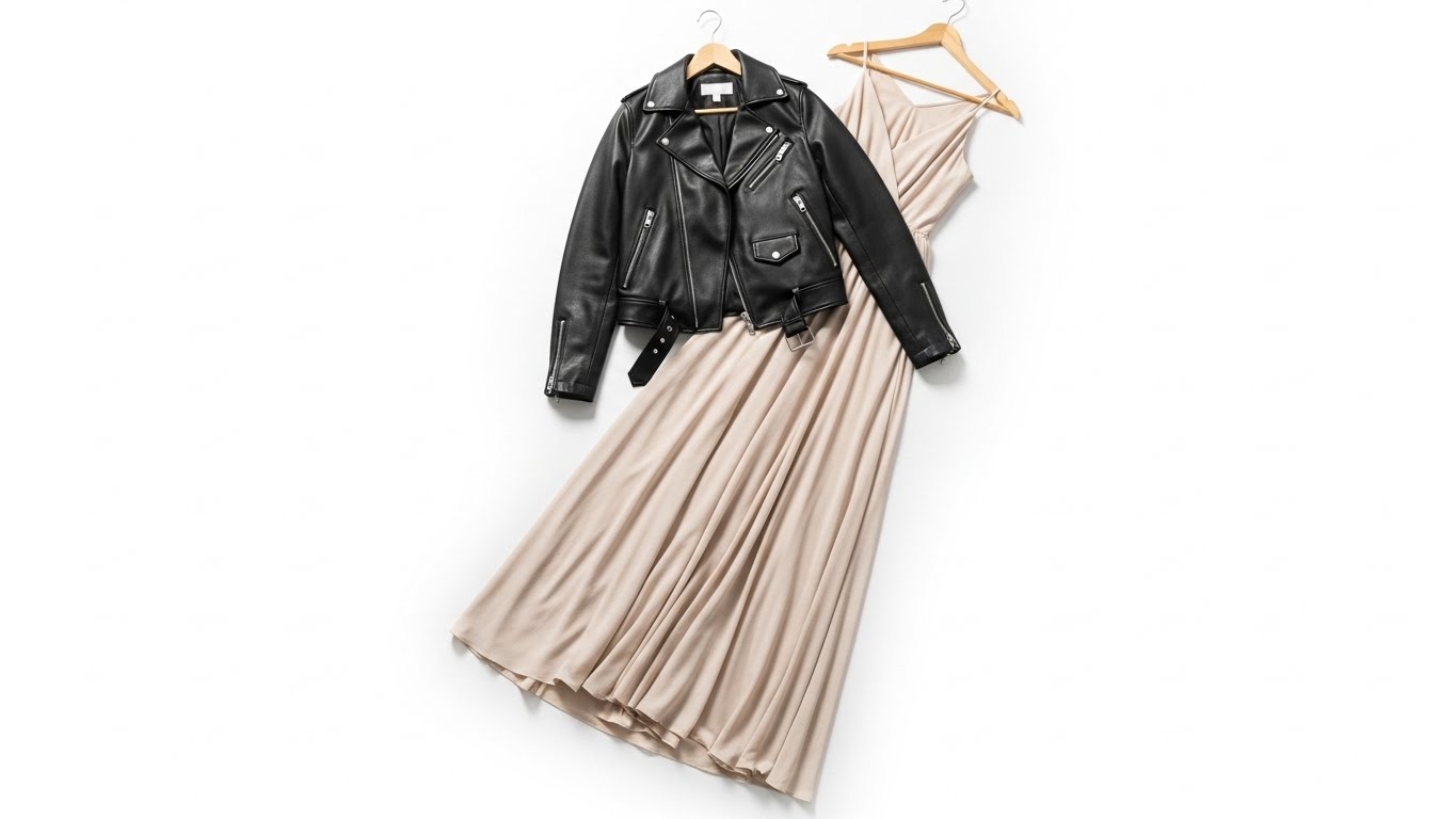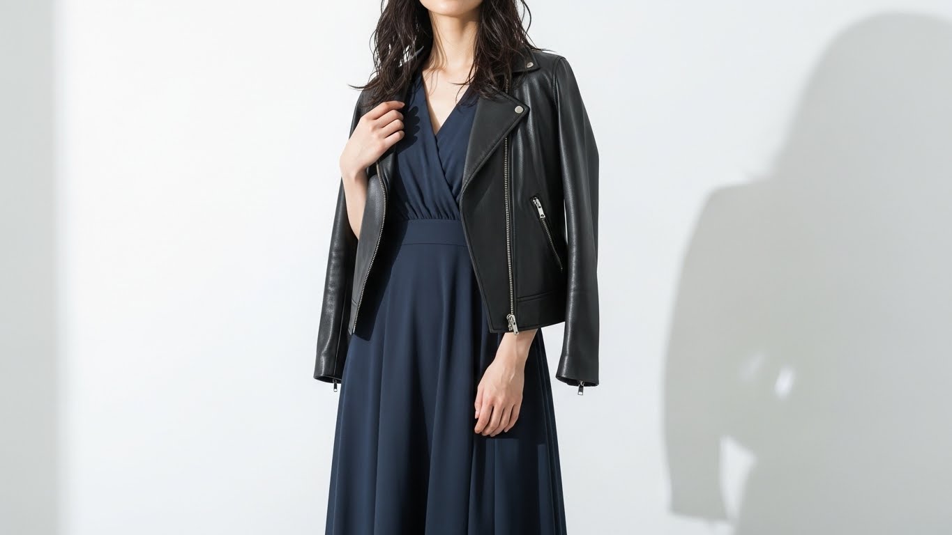 難しく考えすぎず、まずは手持ちのワンピースに革ジャンを羽織ってみてください。