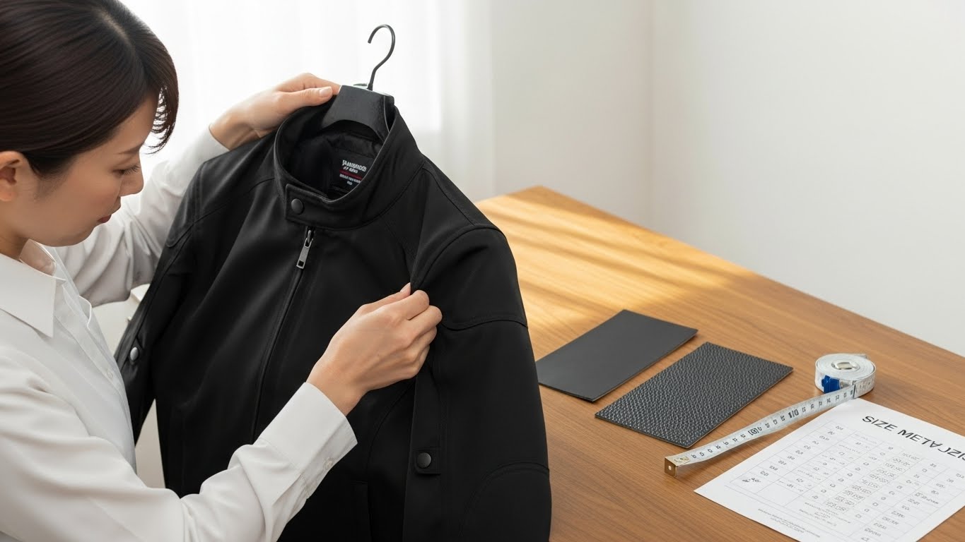 本革は着ているうちに馴染むので、最初は少しタイトでも大丈夫ですよ。