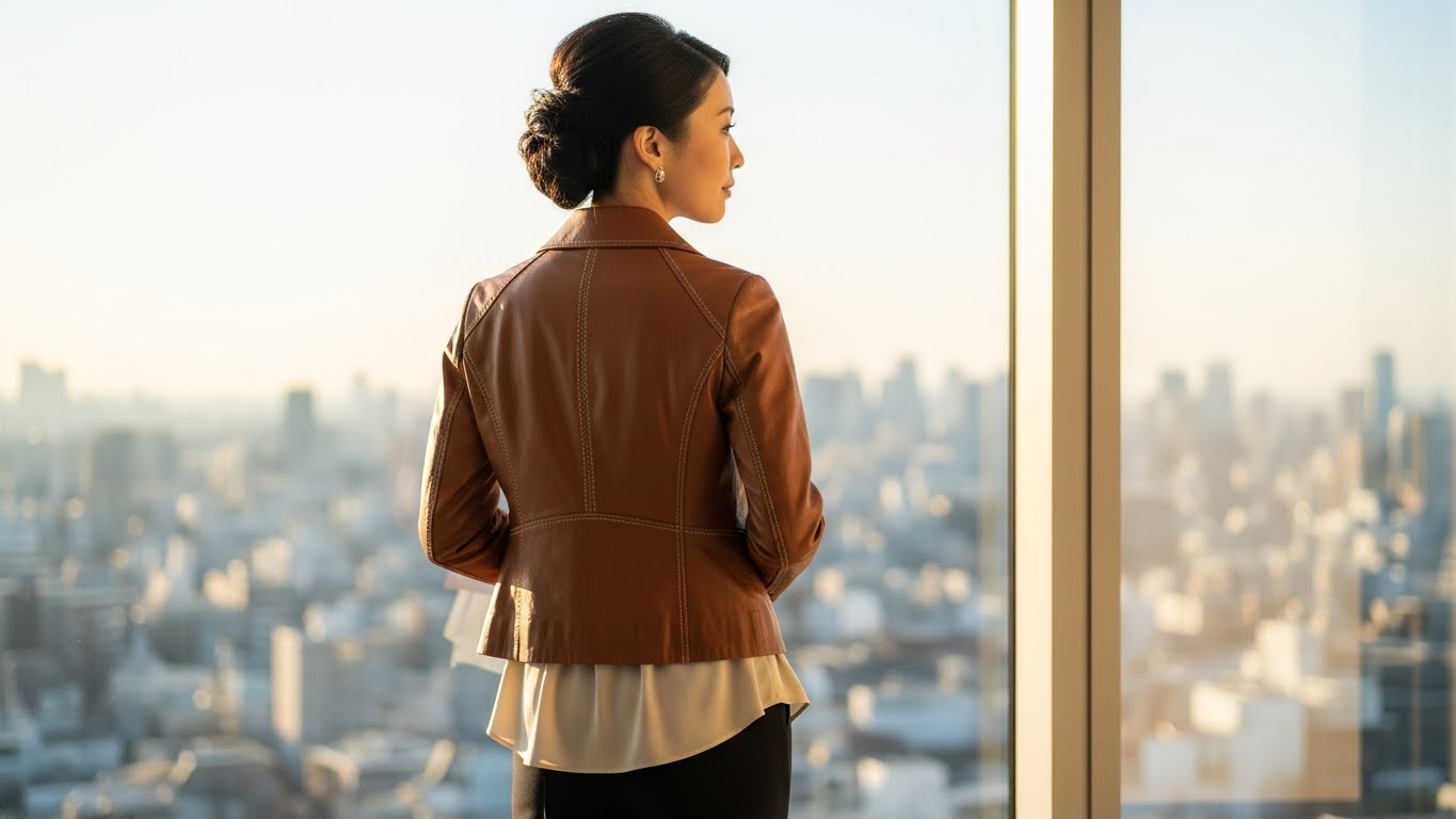 上質なレザーアイテムを選ぶと、より洗練された印象に仕上がります。