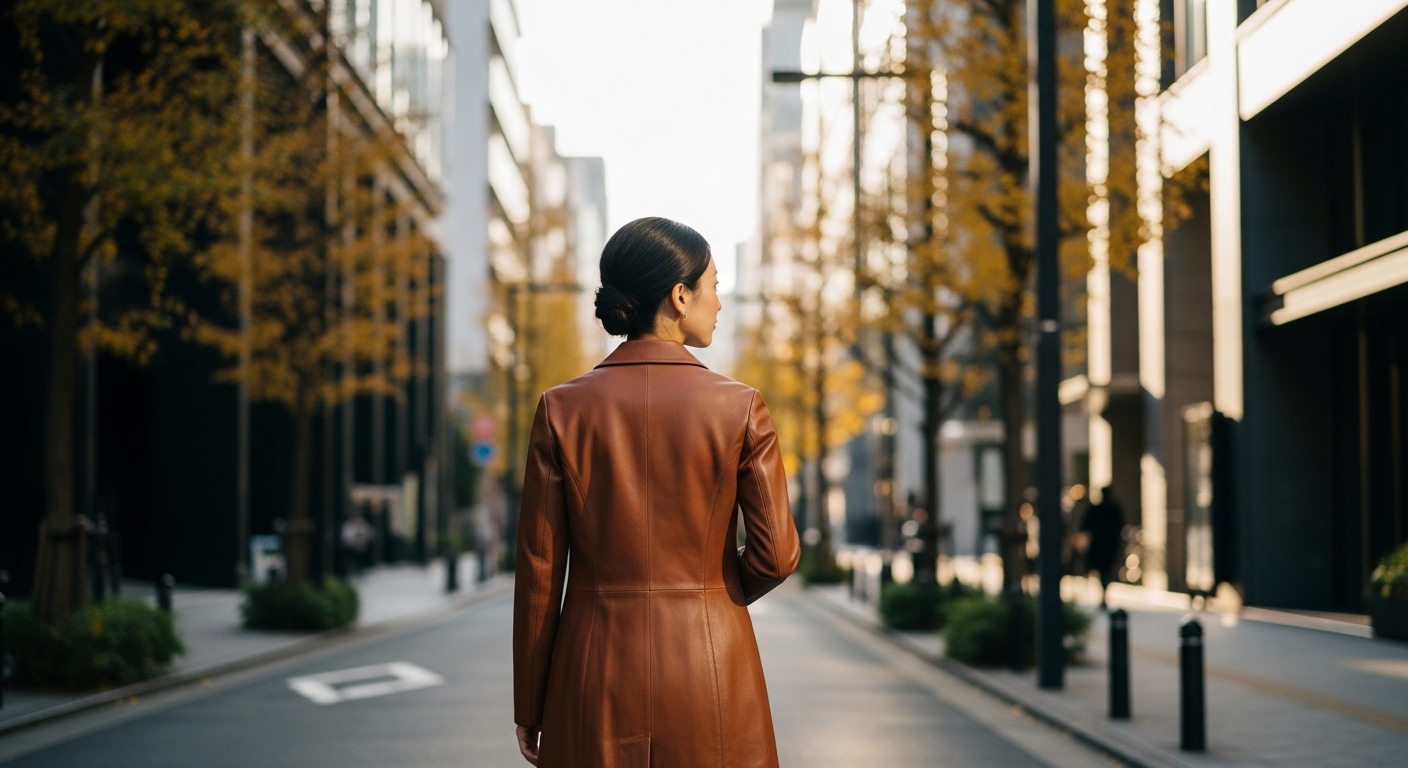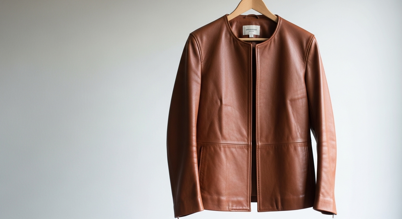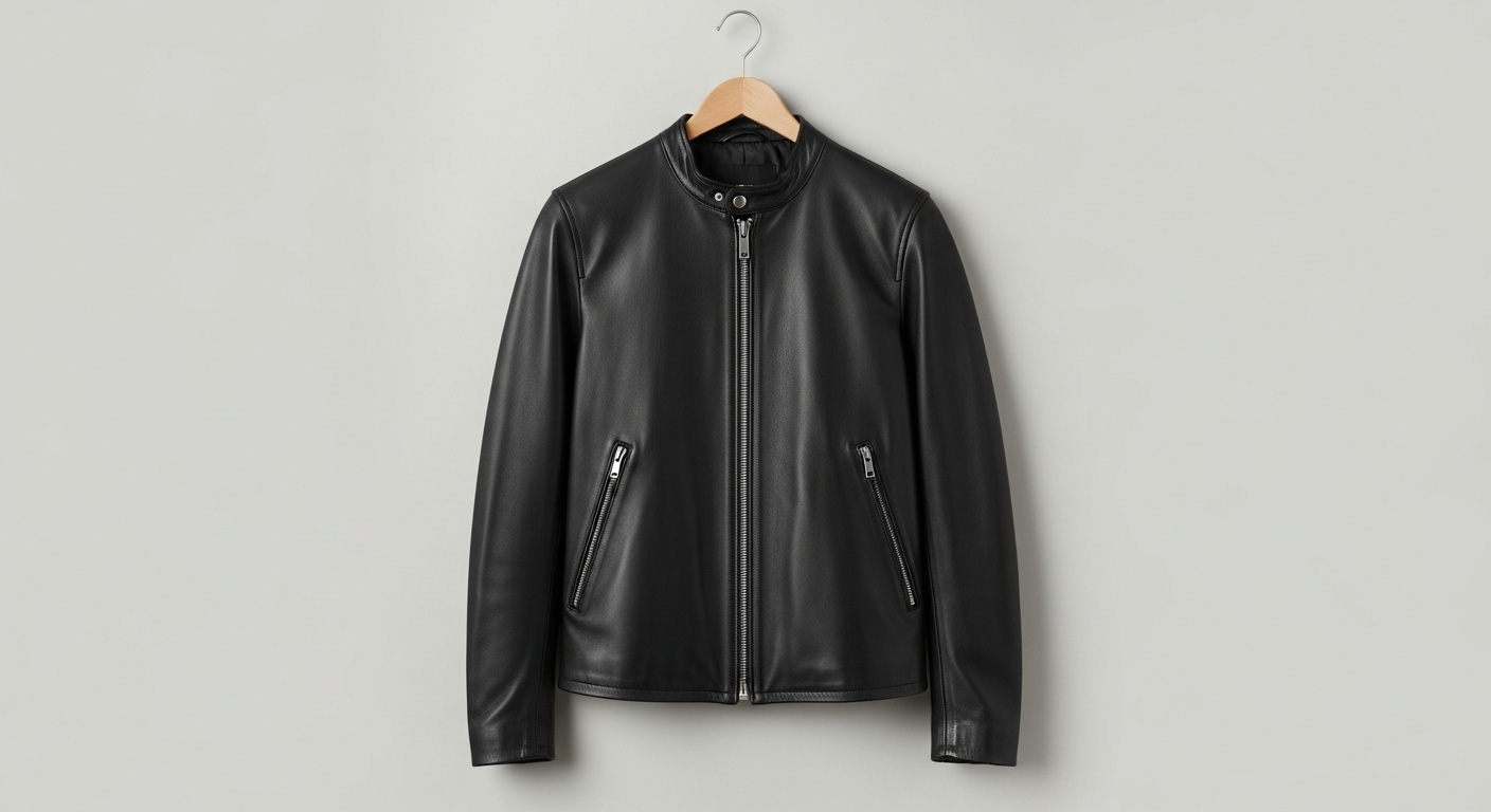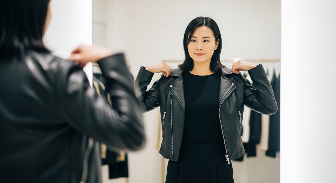 → シンプルなシングルライダースやノーカラーを選び、余計な装飾を避ける