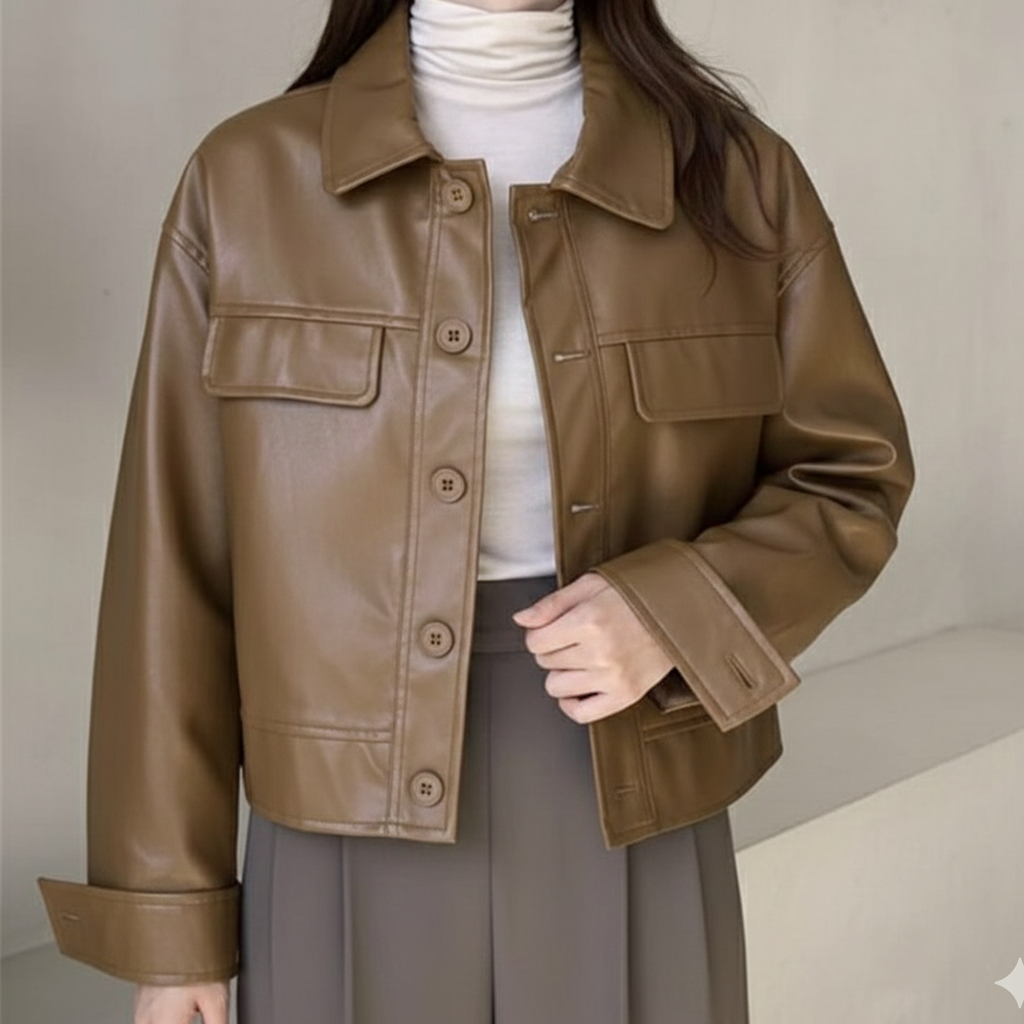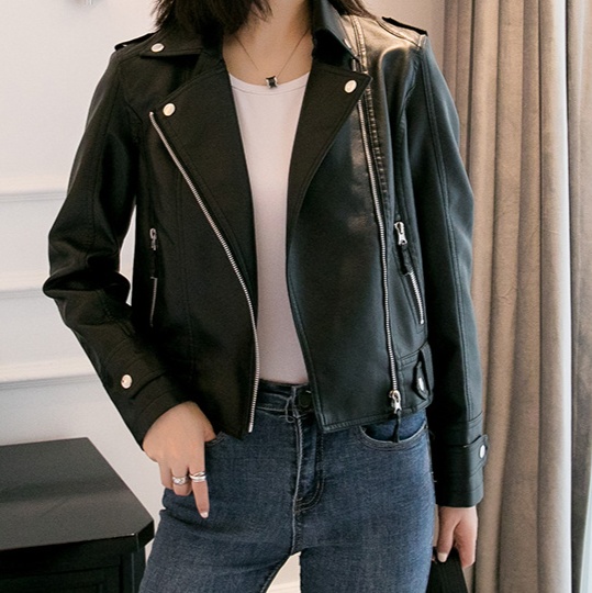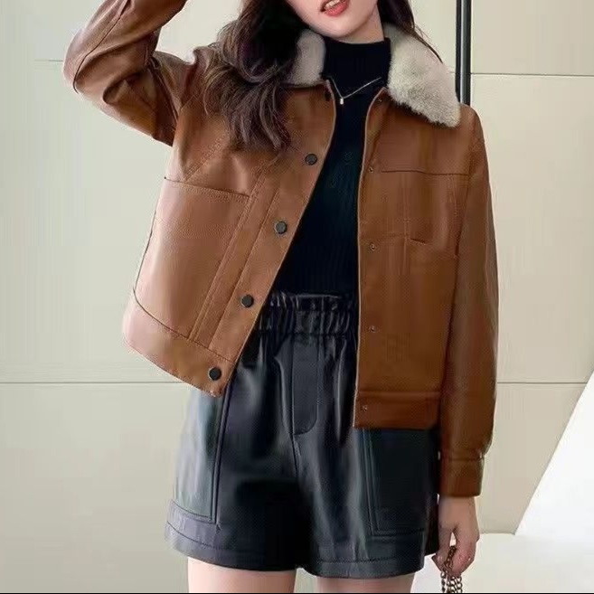 (アイテム挿入箇所:小さめ襟・ラムレザー・モカカラーのライダース)