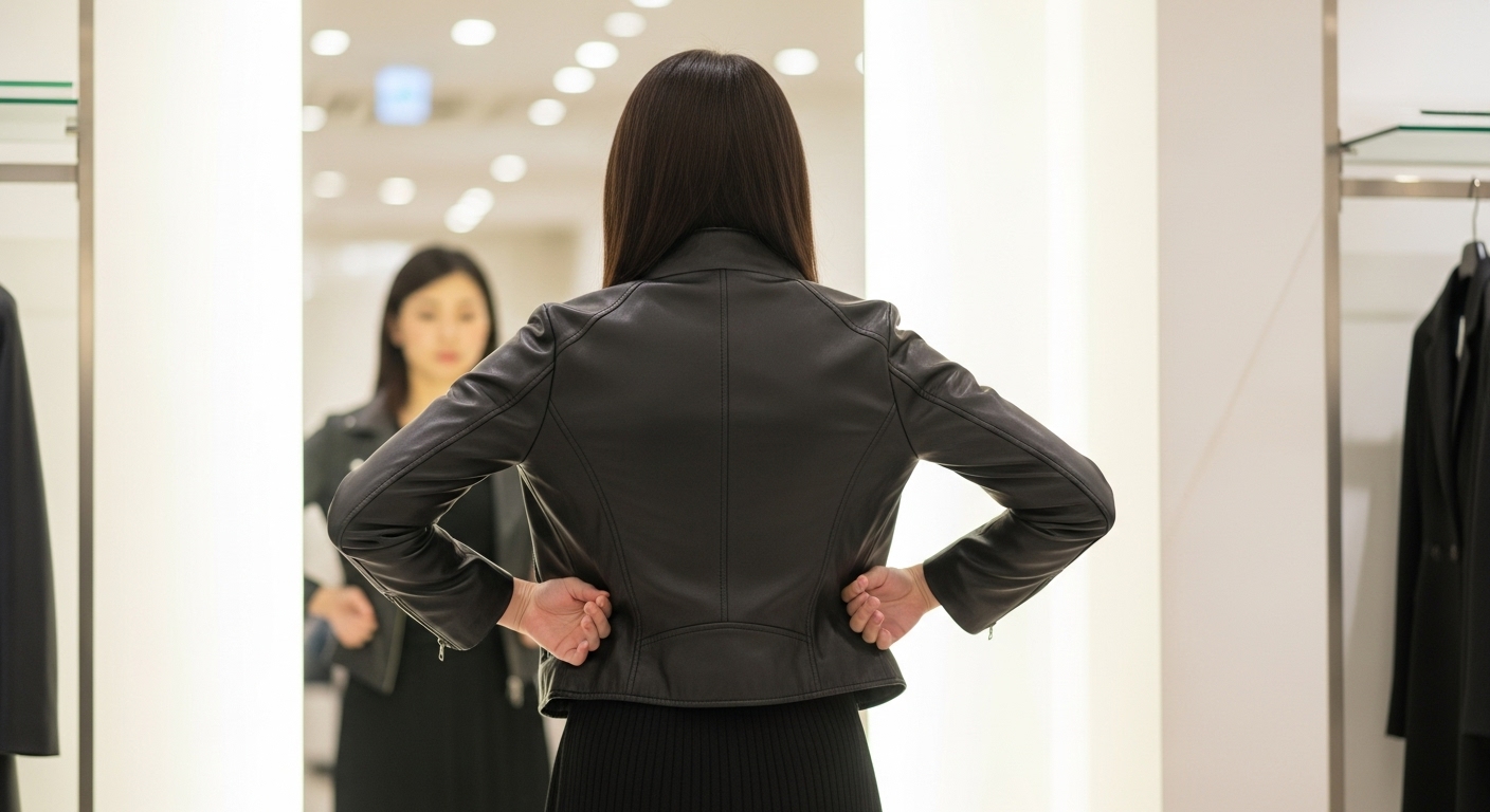 装飾のあるデザインや、曲線的なカットを取り入れることで、女性らしさを保ちながらレザージャケットを楽しめます。