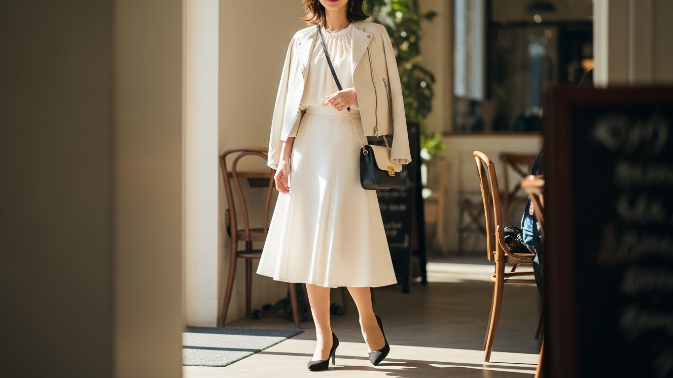 - ベージュのジャケット → 白・アイボリー・ブラウン系でまとめる