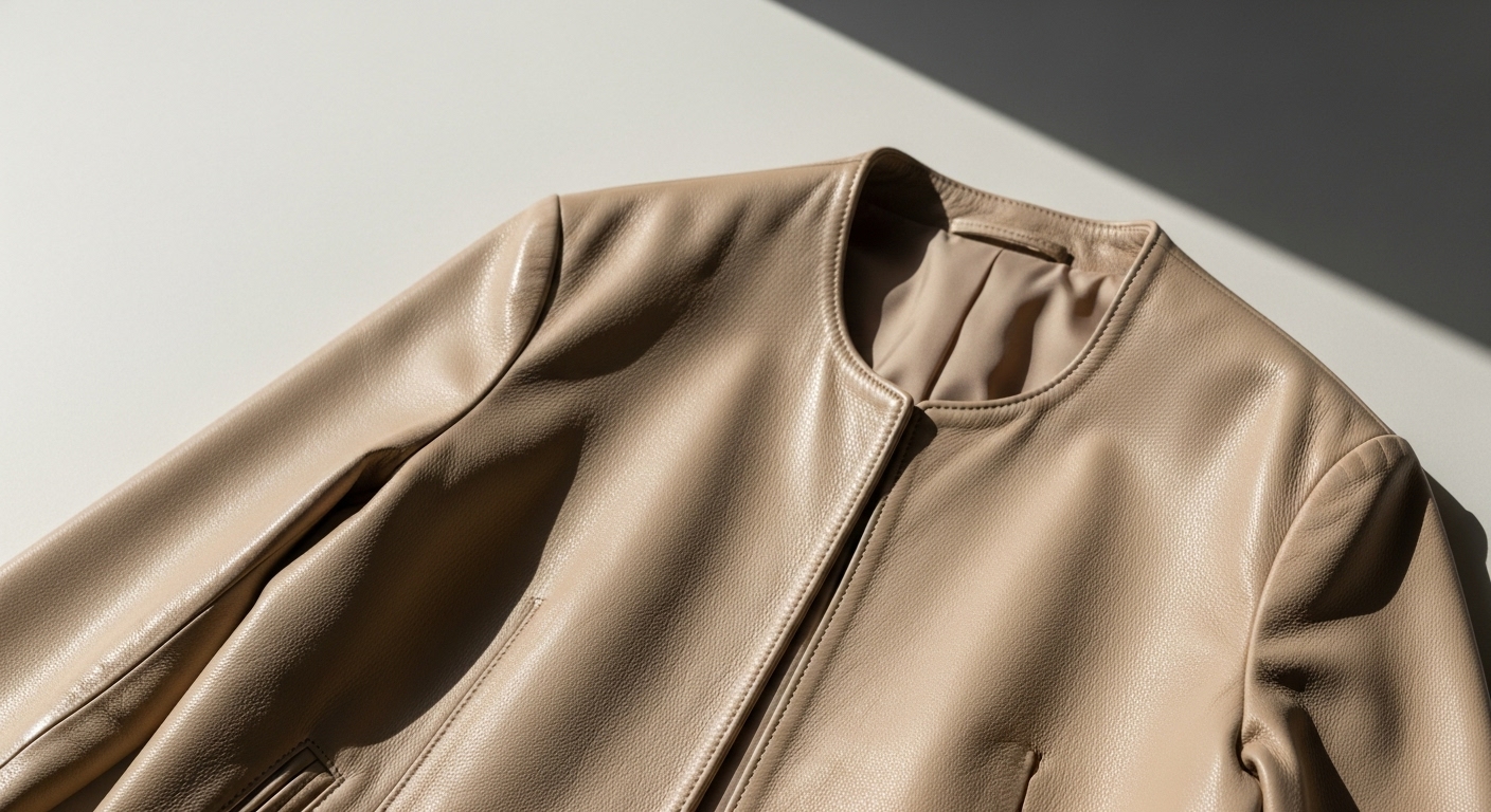 初めてレザージャケットを購入するなら、ベージュのノーカラータイプが最もおすすめです。