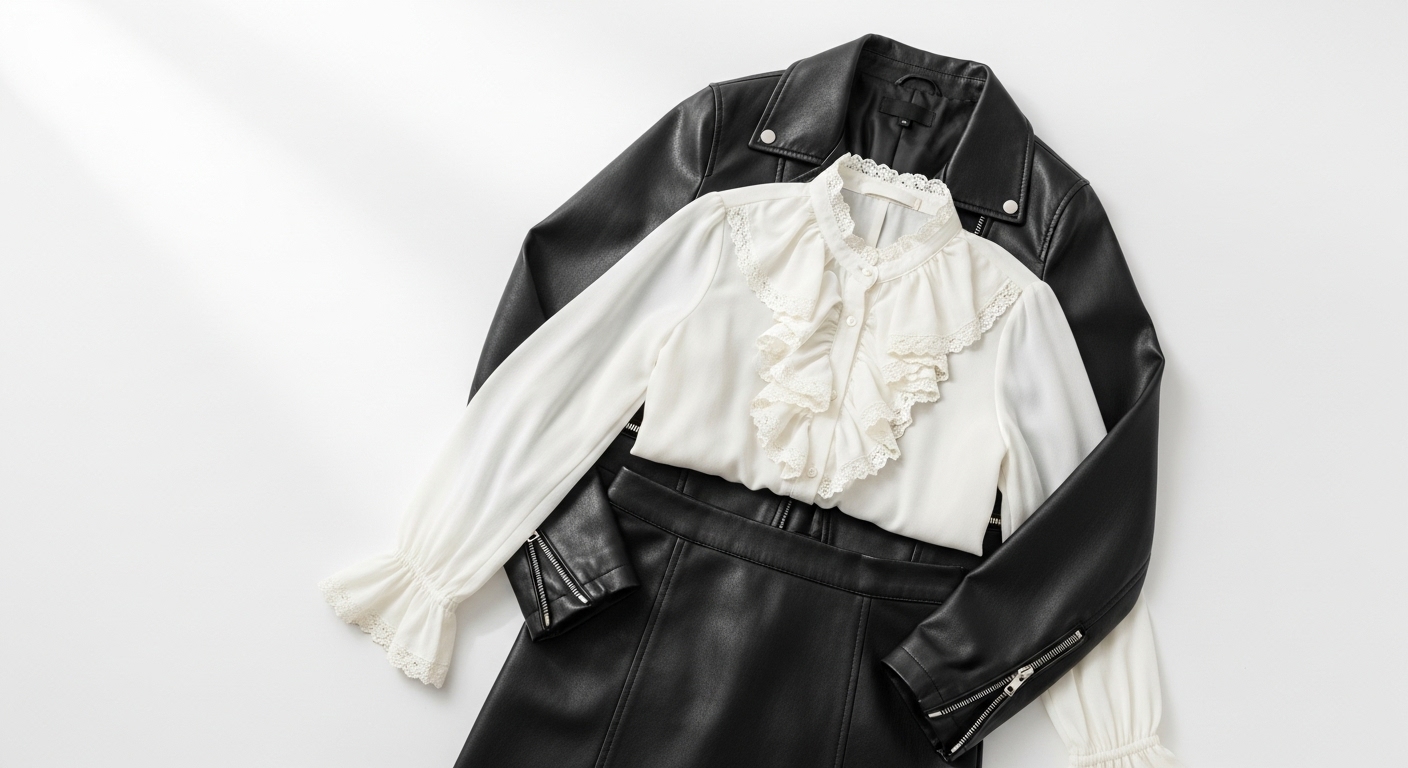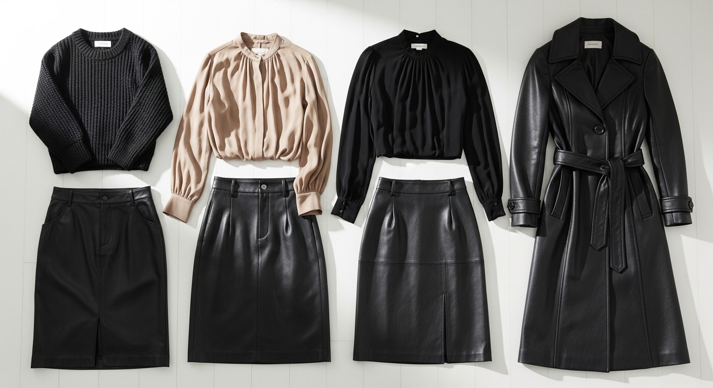 レザースカートを上手に着こなすには、合わせるアイテム選びが重要です。